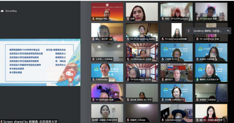 Jinbu + BLCU ร่วมมือกันมอบโอกาสให้กับนักเรียนไทยในเวทีนานาชาติ แสดงศักยภาพและการเรียนรู้ที่ก้าวไกลผ่านกิจกรรมค่ายโอลิมปิกฤดูหนาวปักกิ่ง(นานา) 2021汉语桥 “精彩冬奥·健康中国”青少年线上冬令营 ซึ่งในกิจกรรมครั้งนี้มีนักเรียนเข้าร่วมจาก 5 ประเทศเข้าร่วม ได้แก่ มาเลเซีย ฟิลิปปินส์ อินตาลี รัสเซีย และไทย ระหว่างวันที่ 13 – 21 ธันวาคม โดยกิจกรรมในครั้งนี้มีตัวแทนนักเรียนไทยเข้าร่วมทั้งสิ้น 43 คน